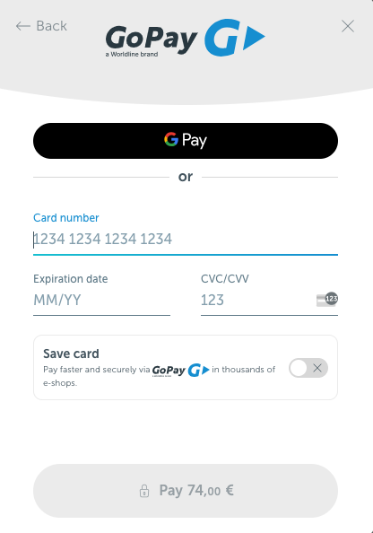 - Pagamento con Google Pay – nell’applicazione GoPay puoi selezionare una carta salvata nel tuo account Google e pagare l’ordine.